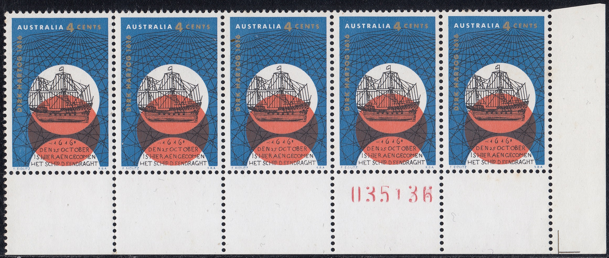 As announced earlier, the Hartog stamp will appear on 24th October, 1966, coincidental with the opening of a philatelic exhibition in Perth, W.A., commemorating the 350th anniversary of the Dutch seaman’s landing on the coast at Shark Bay.