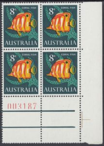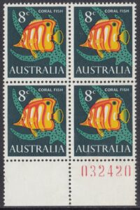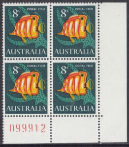 More than half the known species of Australian fish live in tropical waters, and among coral reefs they are usually vividly coloured. The beaked coral fish has a long snout and bristle-like teeth characteristic of the Chaetodon family, and is striped rich orange and yellow. It feeds on particles of food from the interstices of coral.