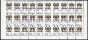 - Sheet: Printed in two panes of 50 stamps (R5 x 10) divided by horizontal gutter.