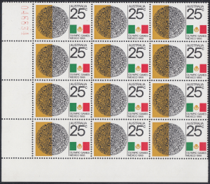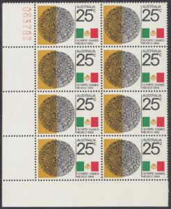 - Sheet: Printed in two panes of 50 stamps (R10 x 5) divided by vertical gutter.