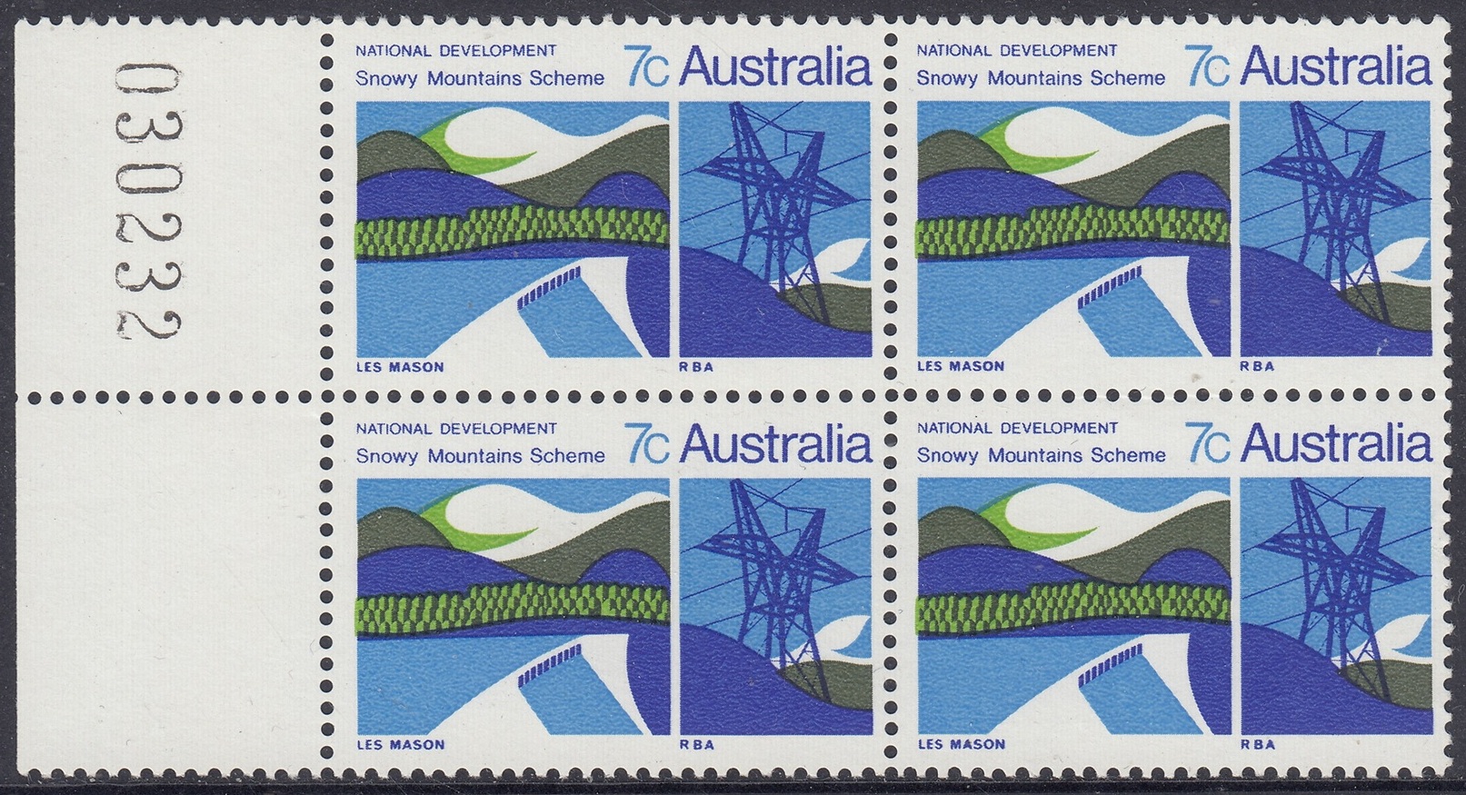 Australia Philately: 1970 Australian National Development – 7c Snowy Mountains Scheme