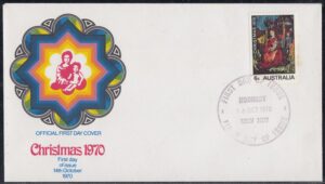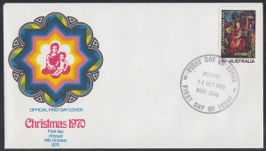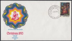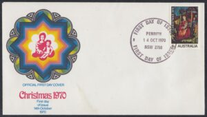 Australia Australia Philately: 1970 Christmas – First Day Cover No.14 (NSW) thedigitalphilatelist 14/10/1970 2000 – CLARENCE STREET 2077 – HORNSBY 2500 – WOLLONGONG 2640 – ALBURY 2750 – PENRITH