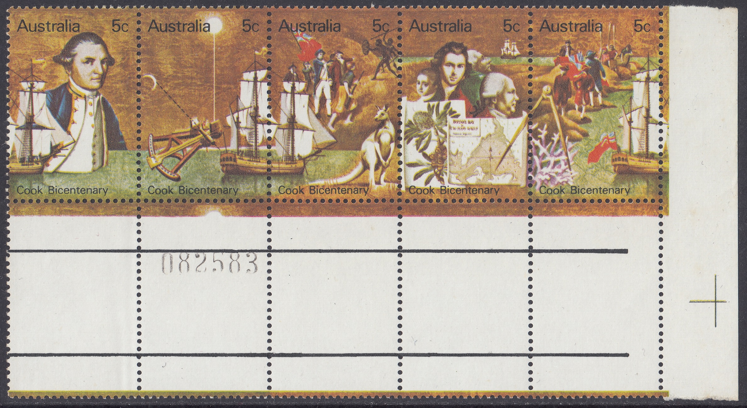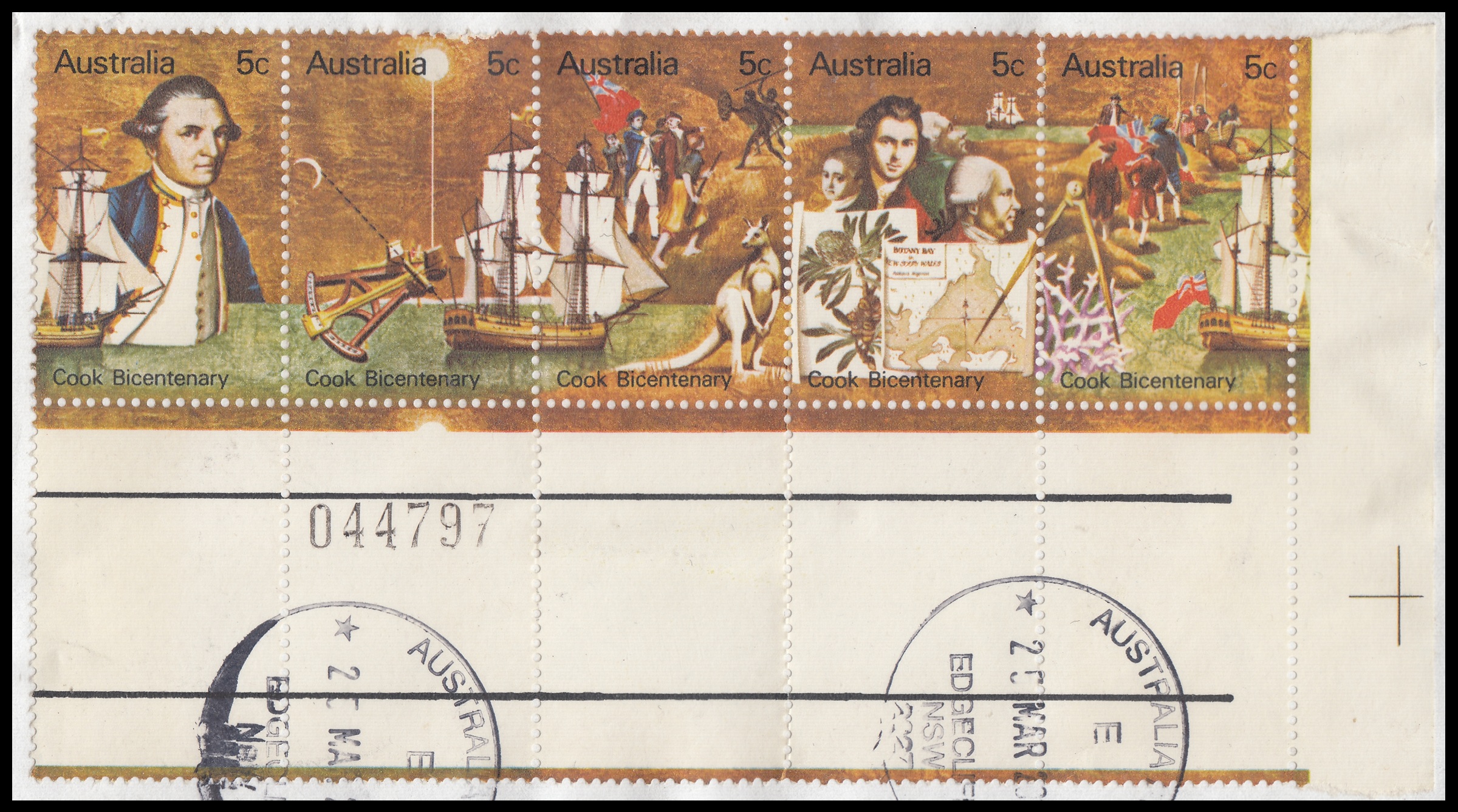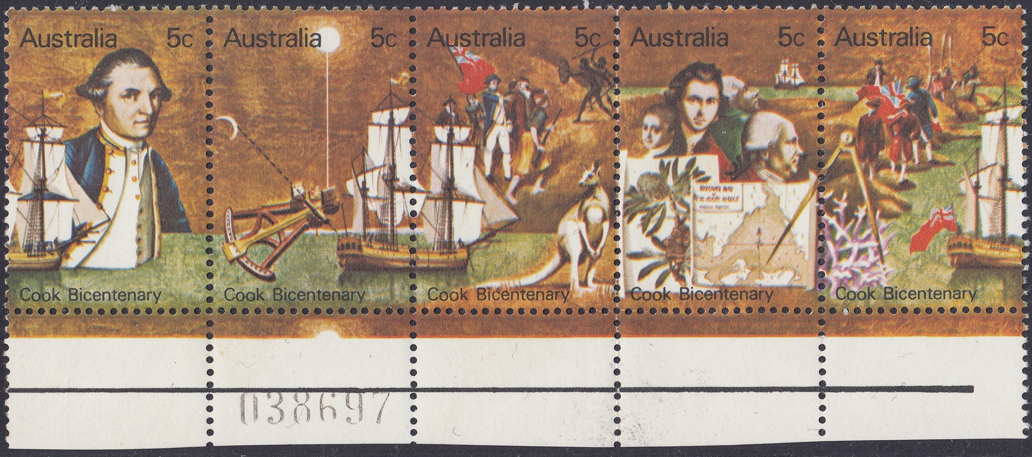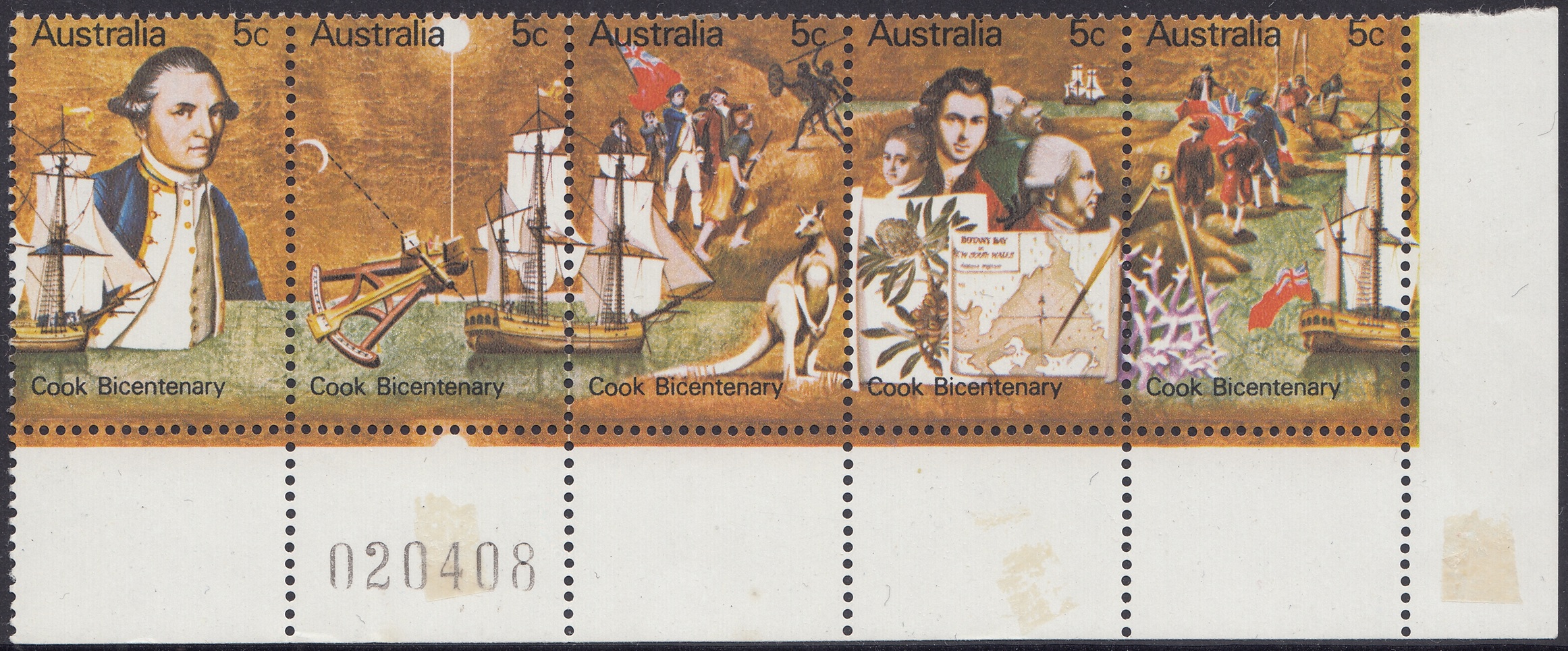 Australia Philately: 1970 Cook Bicentenary – 5c Strip of Five