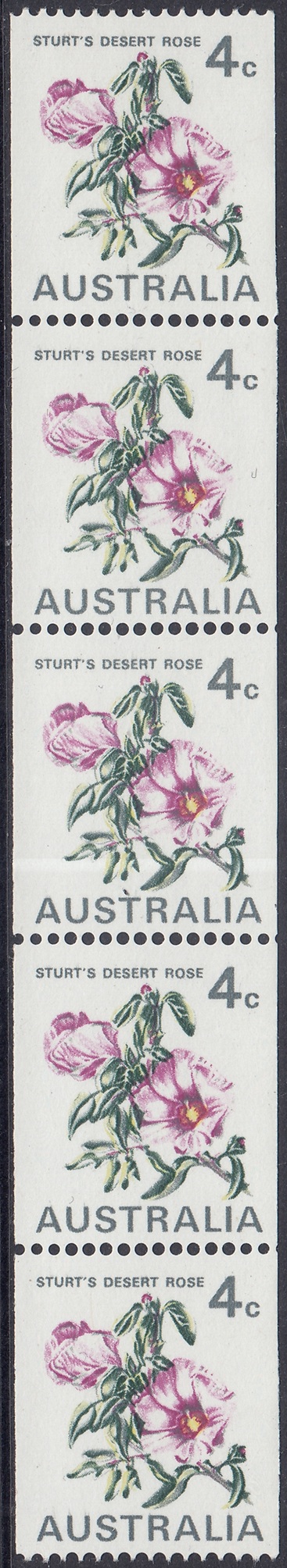 Australia Philately: 1970 Floral Emblem Coil Stamps – 4c Sturt’s Desert Rose