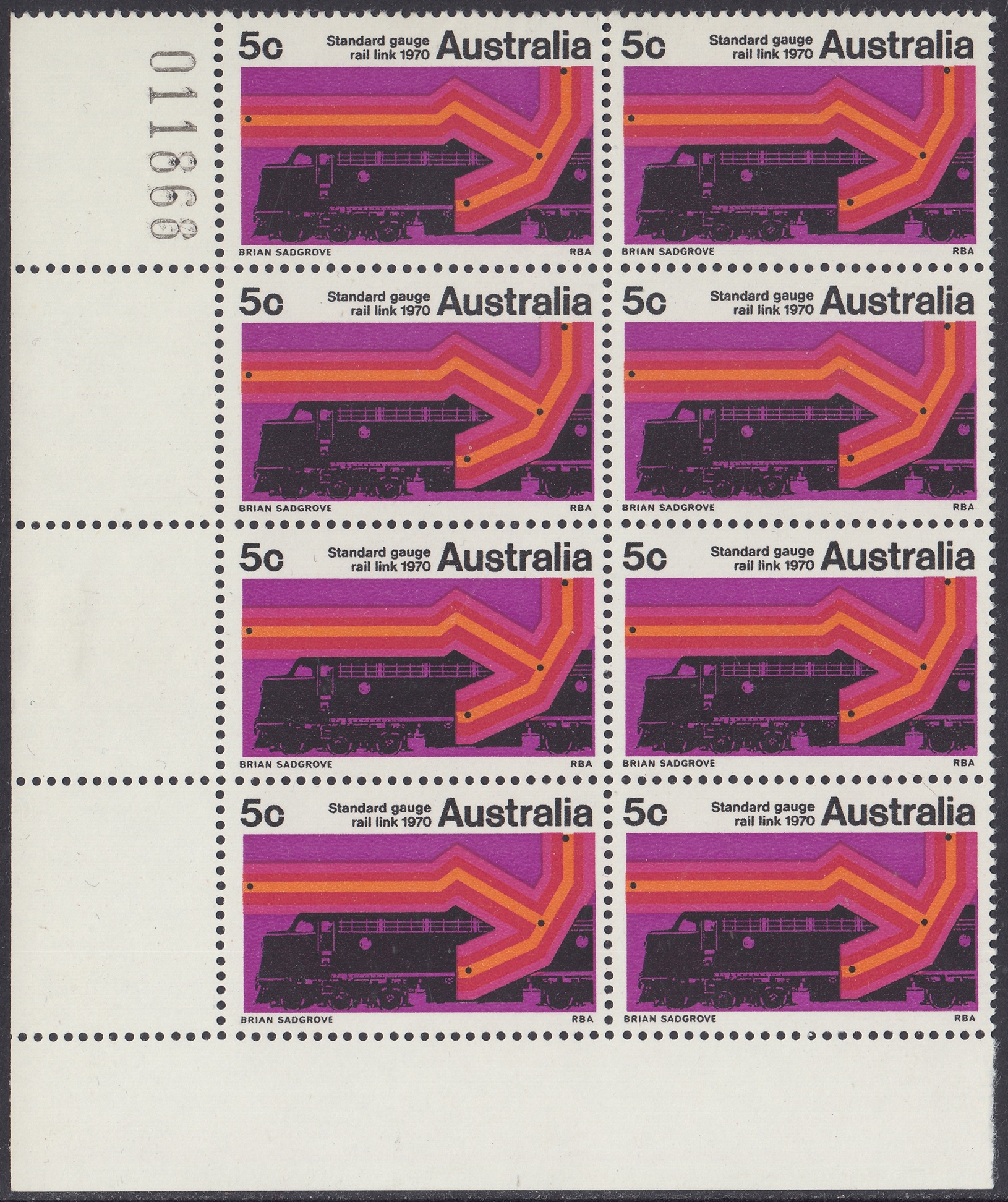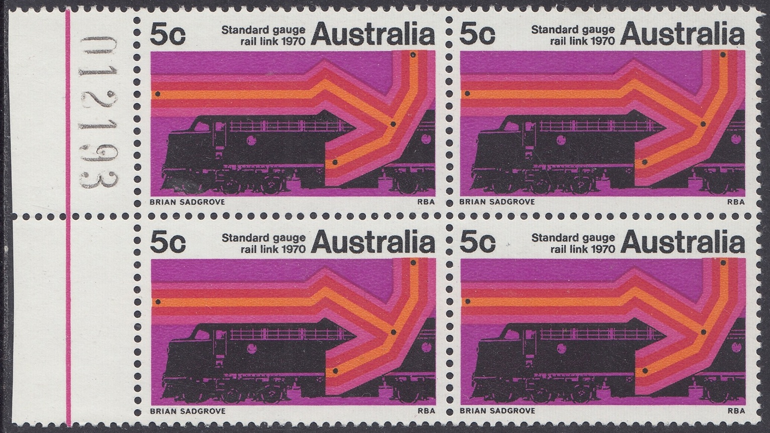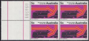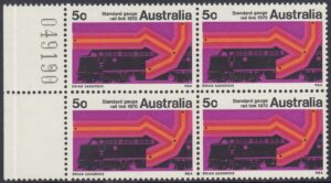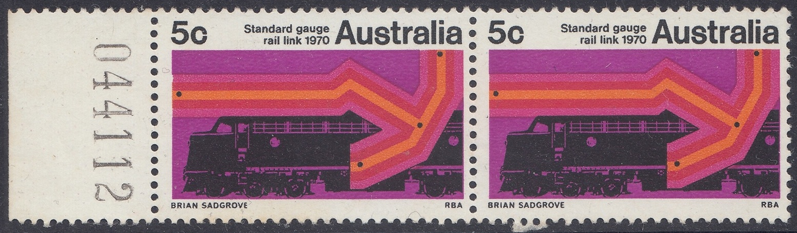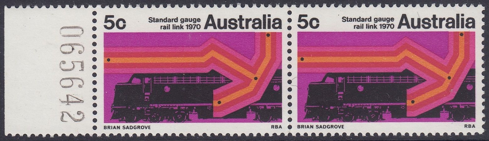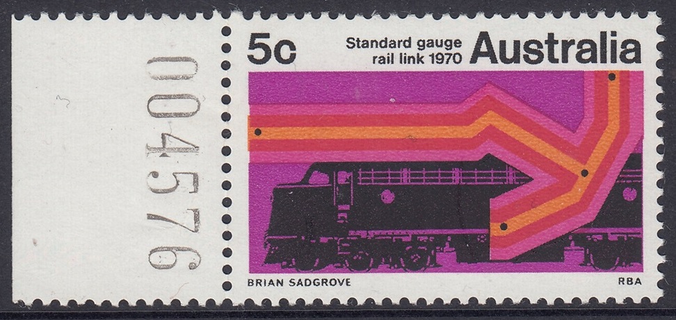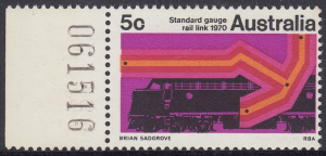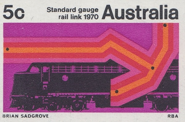 A special 5c stamp will be issued on 11th February, 1970, to mark the completion of the standard guage railway between Sydney and Perth. The stamp will be on sale at all post offices for about three weeks.