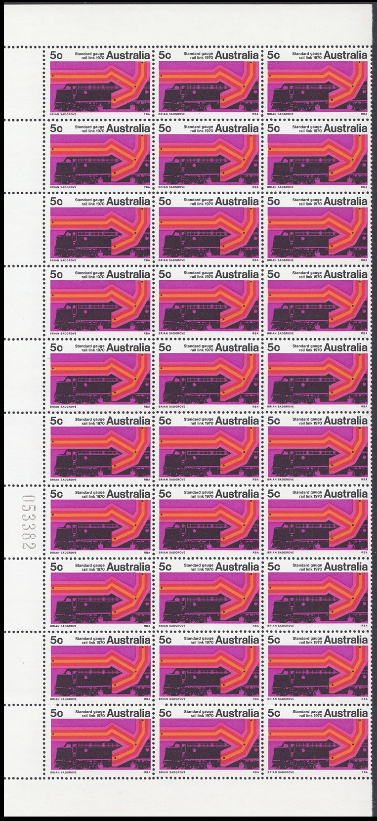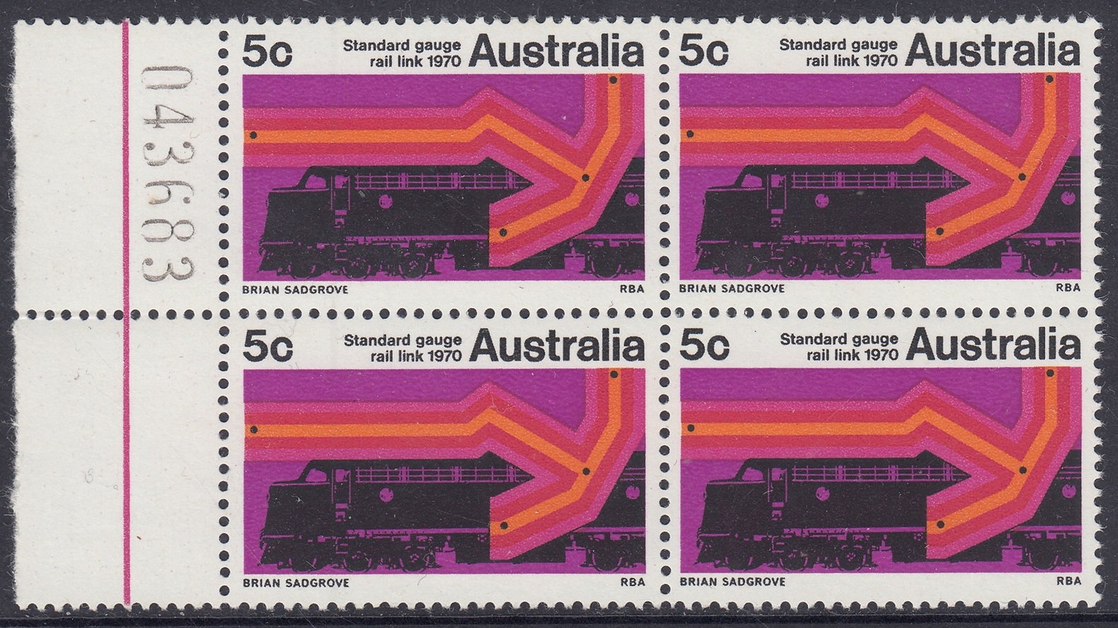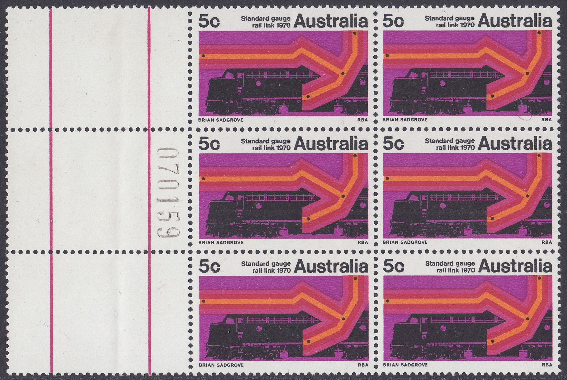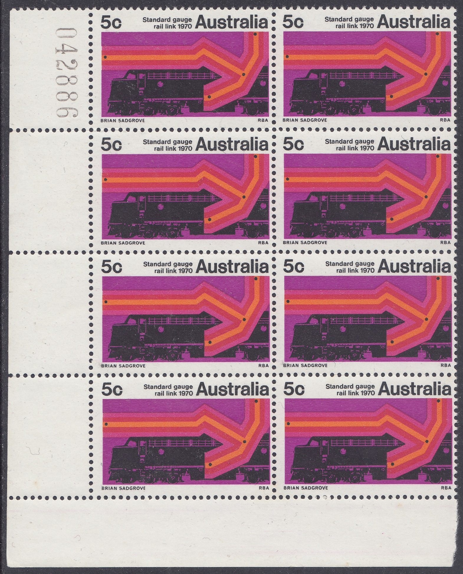 A special 5c stamp will be issued on 11th February, 1970, to mark the completion of the standard guage railway between Sydney and Perth. The stamp will be on sale at all post offices for about three weeks.