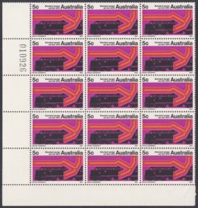 The stamp was designed by Mr. Brian Sadgrove, of Melbourne, and is in the usual large commemorative size (34.5 mm x 22 mm, printed area). It was printed by four-colour photogravure, in sheets of 100 on unwatermarked paper containing helecon, at the Note Printing Branch, Reserve Bank of Australia, Melbourne.