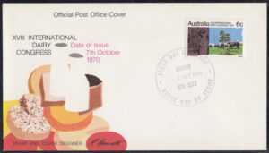 Australia Australia Philately: 1970 XVIII International Dairy Congress – First Day Covers No.12 & No.13 (VIC) thedigitalphilatelist 07/10/1970 3000 – DEGRAVES STREET 3000 – LAW COURTS 3182 – ST KILDA 3350 – BALLARAT 3377 – ARARAT 3550 – BENDIGO 3694 – MIL PO BANDIANA
