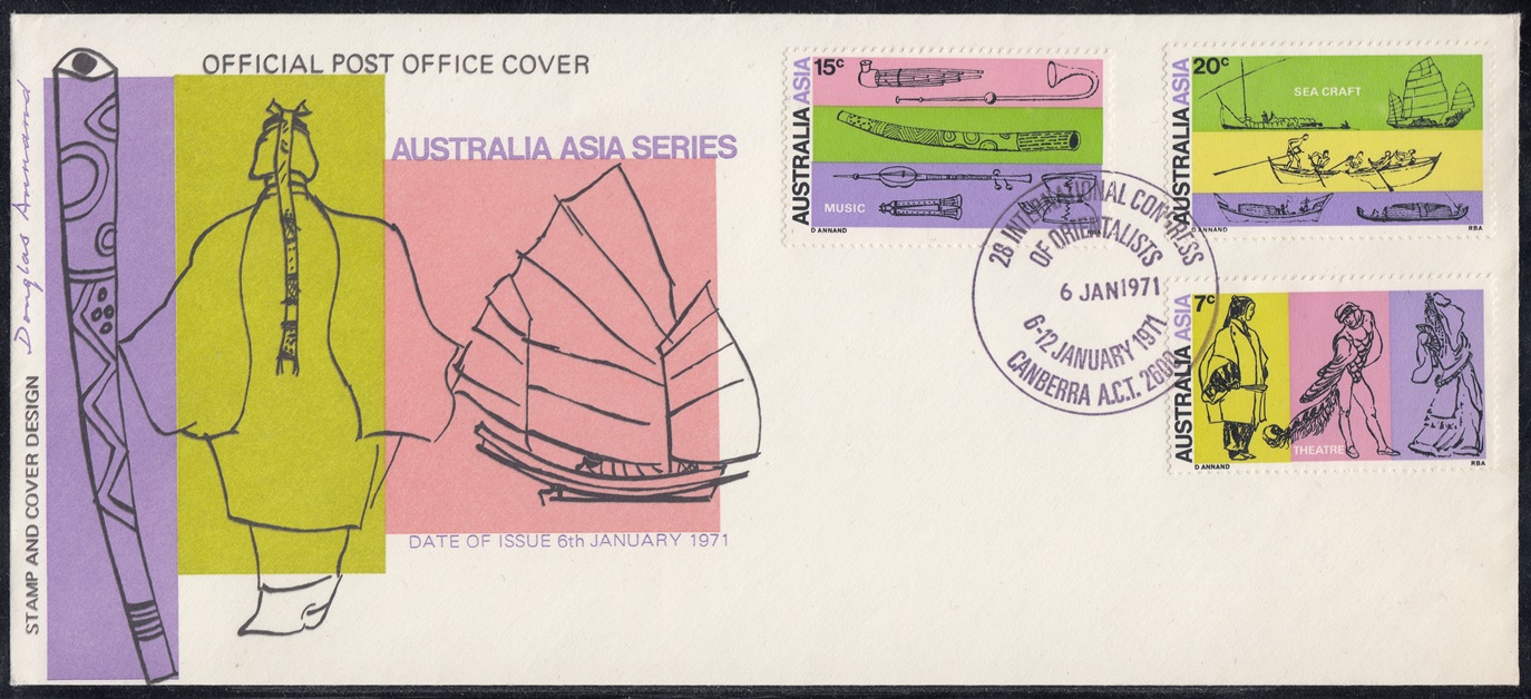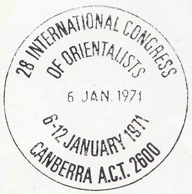 The date of issue of the three stamps coincided with the 28th International Congress of Orientalists, held at Canberra from 6th to 12th January, 1971. A temporary post office, with a special postmarker, was provided for the congress.