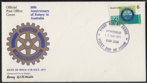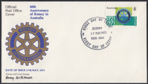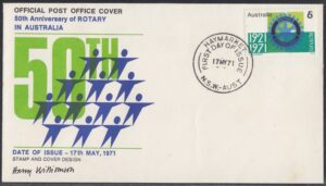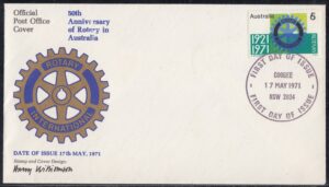 Australia Australia Philately: 1971 50th Anniversary of Rotary in Australia – First Day Covers No.23 & No.24 (NSW) thedigitalphilatelist 17/05/1971 2000 – CLARENCE STREET 2000 – HAYMARKET 2034 – COOGEE 2220 – HURSTVILLE 2640 – ALBURY