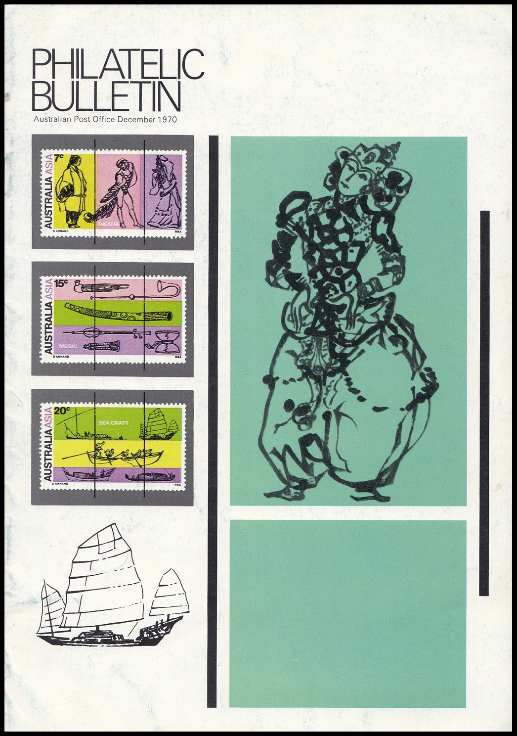 New 7c, 15c and 20c stamps issued on 6th January, 1971, draw attention to the increasing links between Australia and its Asian neighbours. The stamps will remain on sale for about six months.