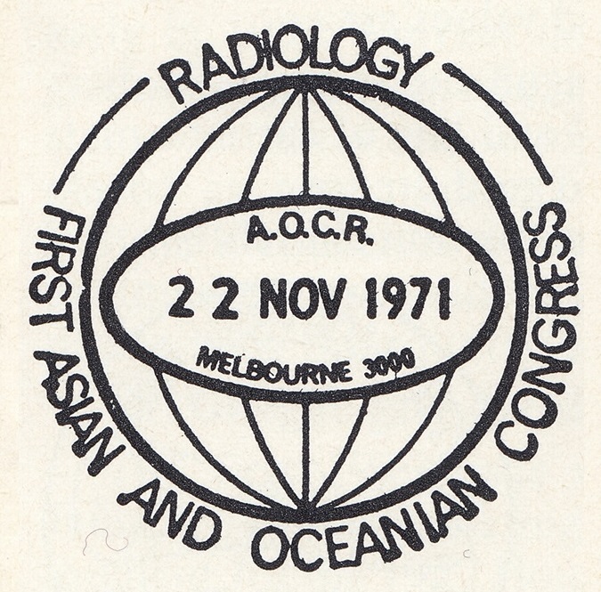 The First Asian and Oceanian Congress of Radiology, held at the Masonic Centre, Melbourne, 22nd to 26th November, 1971, was also provided with a special postmarker, used at the congress temporary post office at the Masonic Centre, Melbourne.