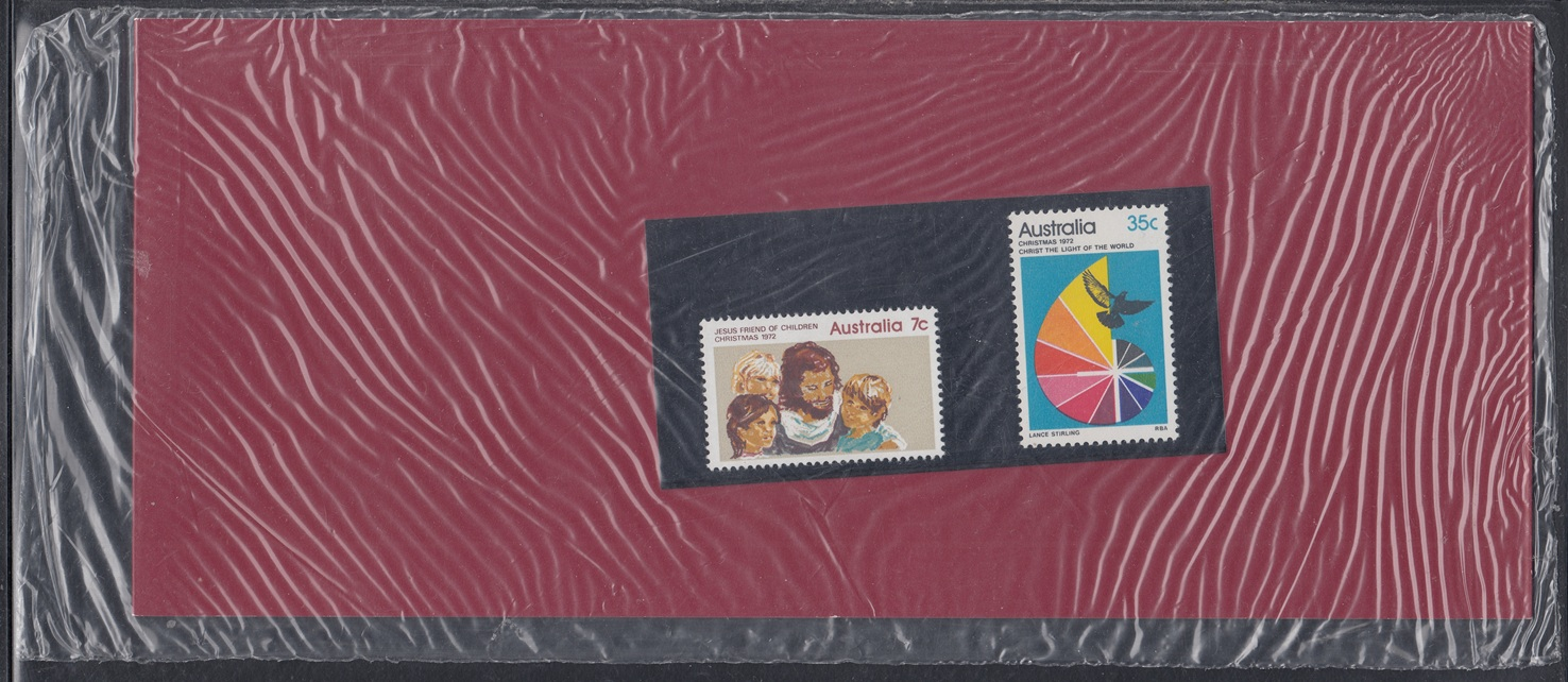 The 1972 Christmas stamps were issued on 29th November, 1972. The denominations are 7c and 35c. This year, the scope of the stamps designs has been extended to include wider reference to the meaning of the birth of Christ, as indicated by the Postmaster-General at ANPEX.