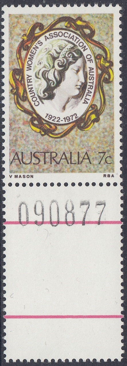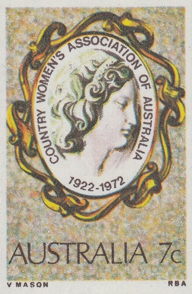 A 7c stamp to mark the 50th anniversary of the Country Women’s Association of Australia was issued on 18th April, 1972, for post office sale for about two weeks, and philatelic sales centres for up to six months.