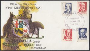 Australia Australia Philately: 1972 Prime Ministers (1913-1929) – First Day Cover No.33 (TAS) James Gavin 08/03/1972 7315 – ULVERSTONE/TAS 7315