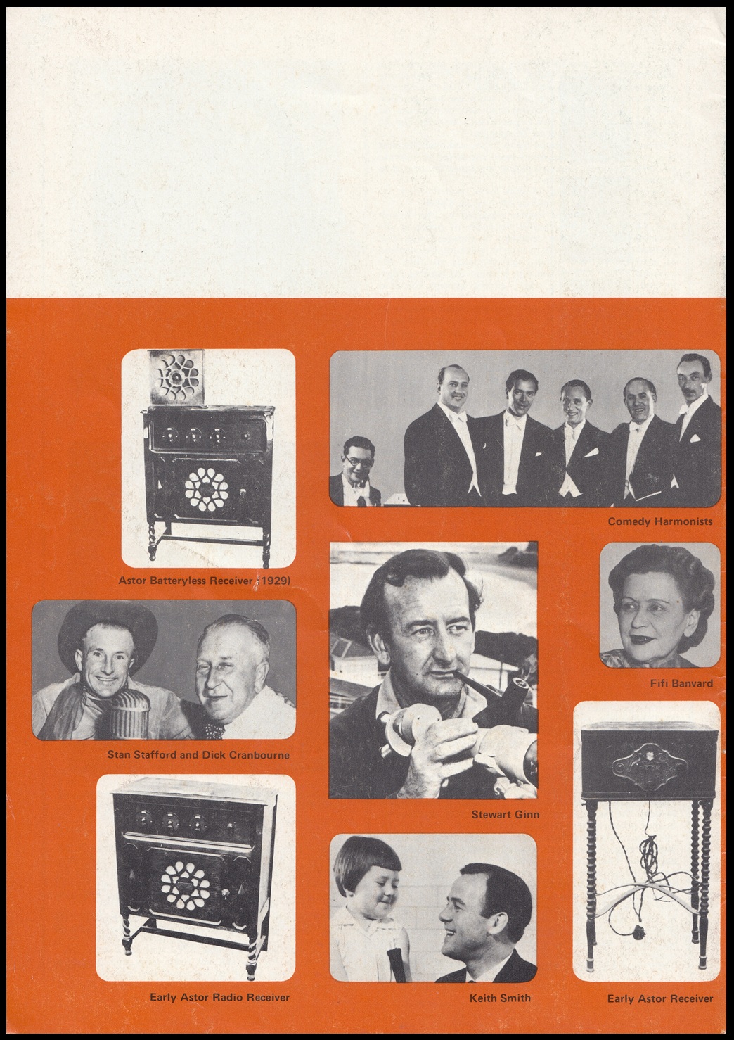 The stamp design depicts an early type two-valve wireless set with a gramaphone horn-type speaker of the period. The design is the work of Mr. Eric Thake of Melbourne. The two official first day covers which were available for the issue were designed by Mr. John Copeland of Adelaide.