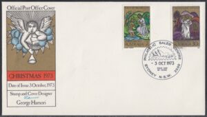 Australia Australia Philately: 1973 Christmas – First Day Cover No.54 (NSW) thedigitalphilatelist 03/10/1973 2000 – PHILATELIC SALES CENTRE SYDNEY 2086 – FRENCHS FOREST 2100 – BROOKVALE
