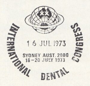 A pictorial postmarker as illustrated was provided at a temporary post office established at the University of New South Wales in Sydney during the International Dental Congress from 16th – 20th July, 1973,