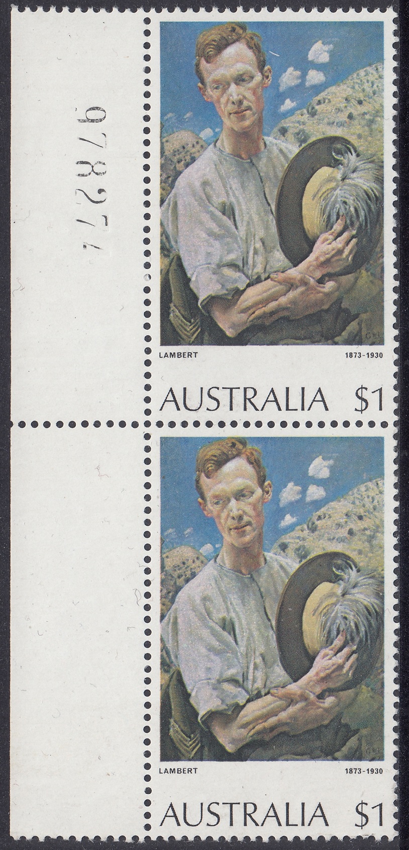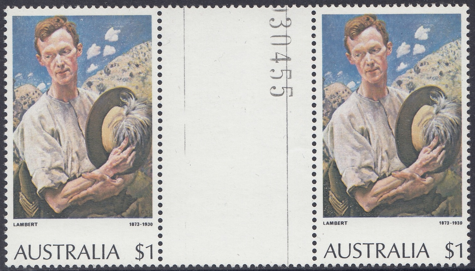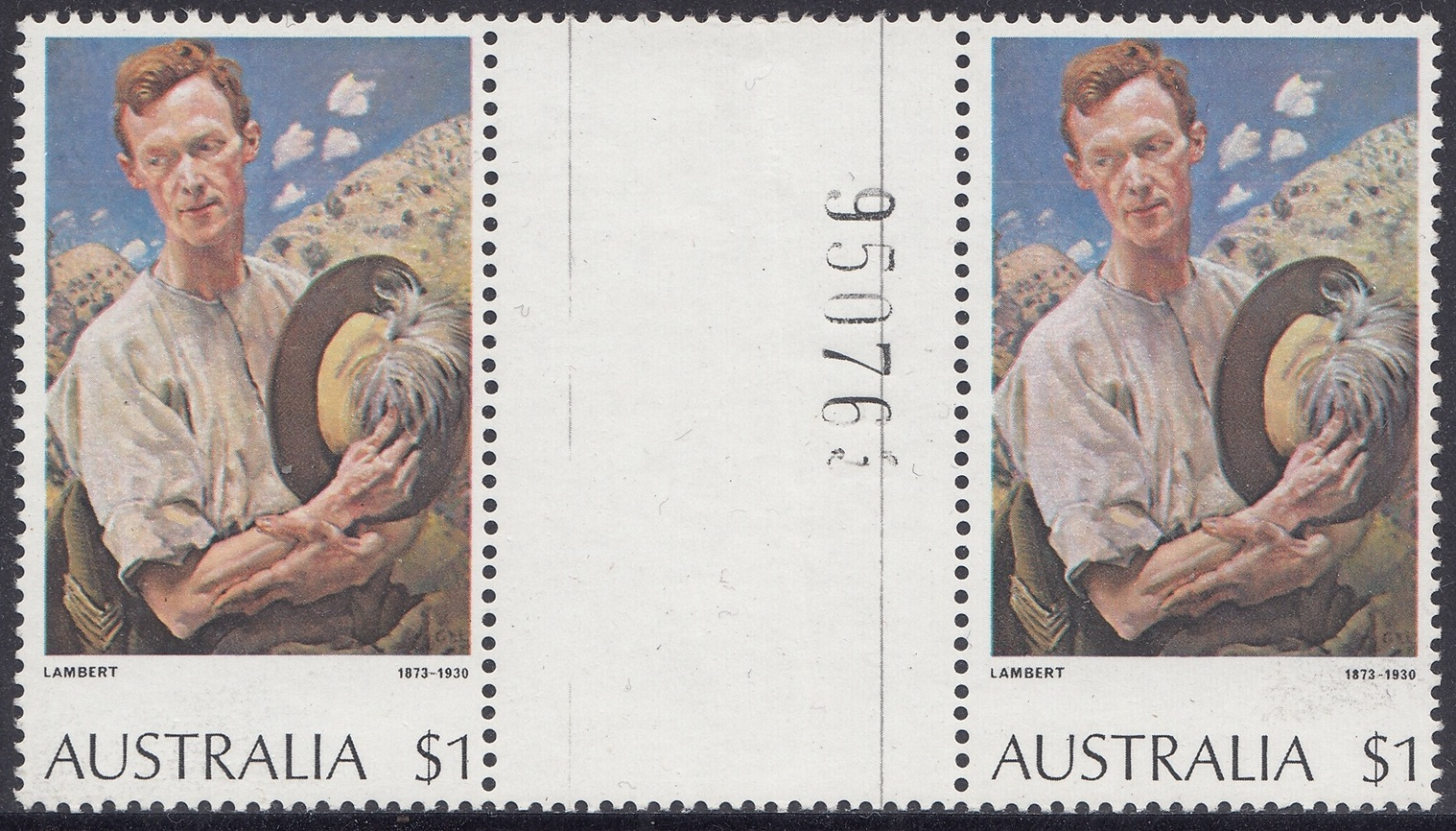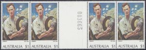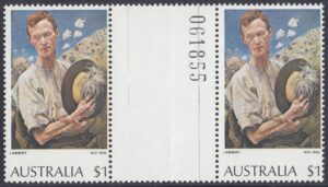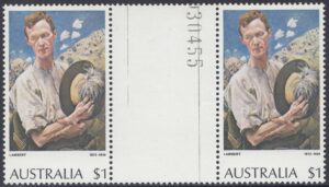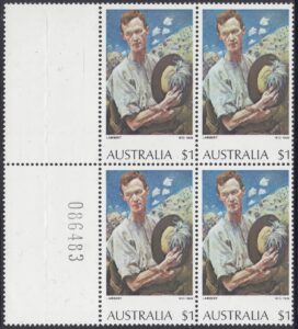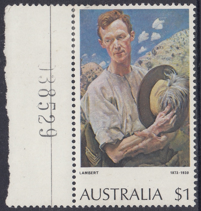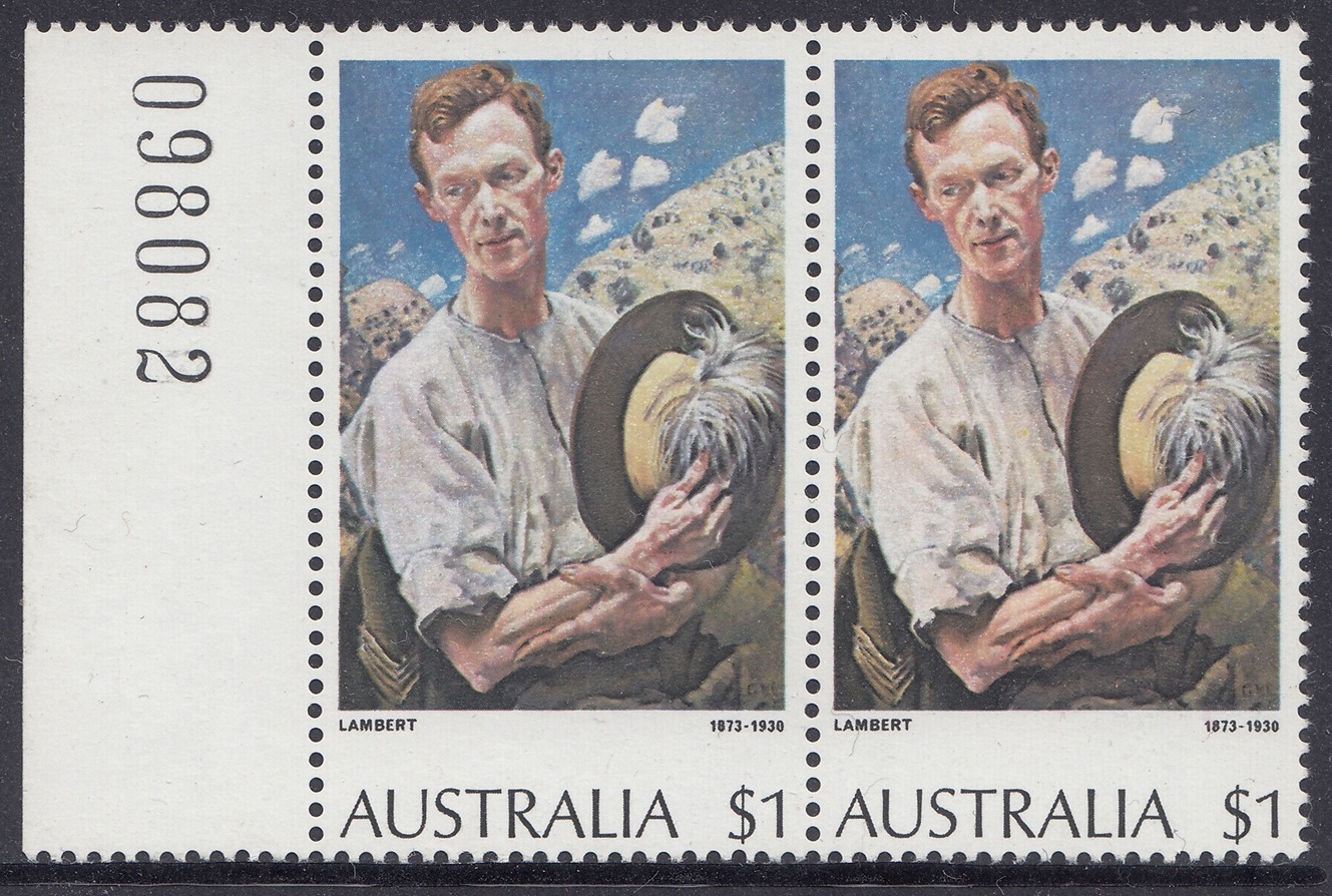 *The $1 “A Sergeant of Light Horse” and $2 “Red Gums of the Far North” stamps were originally printed on Harrison unwatermarked non-luminscent paper, with gum arabic adhesive. This paper had been in stock for some time. Since it was made, a world shortage of gum arabic developed, and stamp paper now generally uses polyvinyl alcohol adhesive. Thus, recent new printings [1976] of the $1 stamp were made on new supplies of Harrison unwatermarked PVA paper, without luminescence. Portins of the reprinting of the $2 stamp was made on remainder stocks of Harrison unwatermarked non-luminescence gum arabic paper, and the balance on Harrison unwatermarked non-luminescent PVA paper.