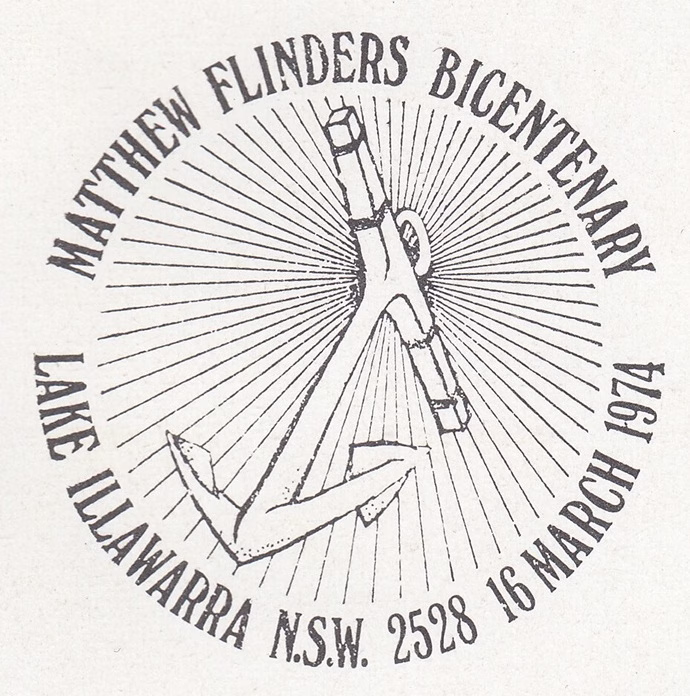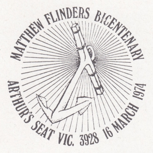 The postmarkers were used at the following six points (one in each state) associated with Flinders’ voyages: – Albany (WA), Port Lincoln (SA), Arthur’s Seat (VIC), Whitemark (Flinder’s Island, Tas), Lake Illawarra (NSW) and Pialba (Qld).