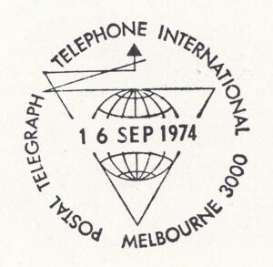 A pictorial postmarker amd a temporary post office were provided for the Sixth Postal, Telegraph and Telephone International Asian Regional Conference held in Melbourne between 16th and 20th September, 1974. A total of 2,985 articles, including 21 registered were cancelled with the special postmarker.