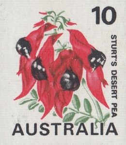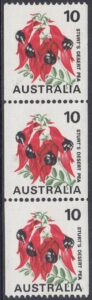 A new 10c coil definitive stamp, featuring the 7c Sturt’s Desert Pea design, modified to show the 10c denomination, was issued on 15th January, 1975.