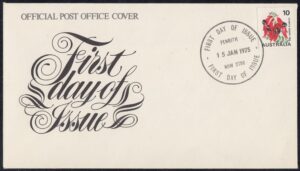 Australia Australia Philately: 1975 10c Coil Stamp – First Day Cover No.70 (NSW) thedigitalphilatelist 15/01/1975 2000 – PHILATELIC SALES CENTRE 2100 – BROOKVALE 2428 – FORSTER 2750 – PENRITH