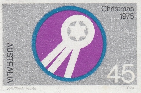 The Australian 1975 Christmas stamps of 15c and 45c denominations were issued on 29th October, 1975. The 15c Christmas stamp was issued to meet the need for large quantities of this denomination following the special postage rate introduced for the standard size envelopes containing Christmas cards for delivery within Australia and endorsed “card only”; the rate applied only during November and December, 1975. The 45c rate is the airmail charge to Europe and the United Kingdom for letters weighing up to 10 grams.