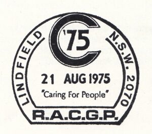 A pictorial postmarker and a temporary post office were provided at the Kuring-gai College of Advanced Education, Lindfield, N.S.W., during the Royal College of General Practitioners Convention, held between 21st and 29th August, 1975. The special cancellation was applied to a total of 10,276 articles, including 26 registered.