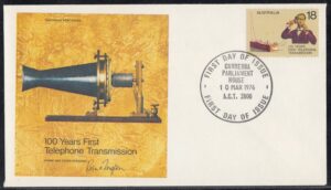 Australia Australia Philately: 1976 100 Years First Telephone Transmission – First Day Covers No.83 & No.84 (ACT) thedigitalphilatelist 10/03/1976 2600 – CANBERRA PARLIAMENT HOUSE 2601 – CANBERRA CITY