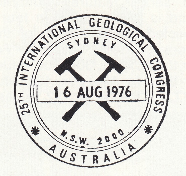 A pictorial postmarker was used to cancel 10,445 articles, including 20 registered, at the temporary post office provided at Sydney University between 16th and 25th August, 1976, for the 25th International Geological Congress.