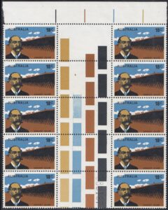 - Sheet: Printed in two panes of 50 stamps (R10 x 5), separated by vertical gutter.