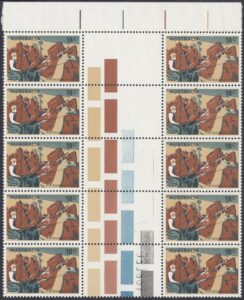 - Sheet: Printed in two panes of 50 stamps (R10 x 5), separated by vertical gutter.