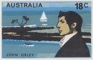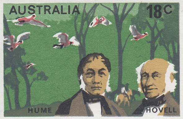 A series of six 18c commemorative stamps featuring Australian explorers was issued on the 9th June, 1976. The explorers depicted are John Oxley, Hume and Hovell, W. C. Gosse, P. E. Warburton, John Forrest and Ernest Giles. Each of the explorers is depicted against a background which shows a portion f the country they traversed.