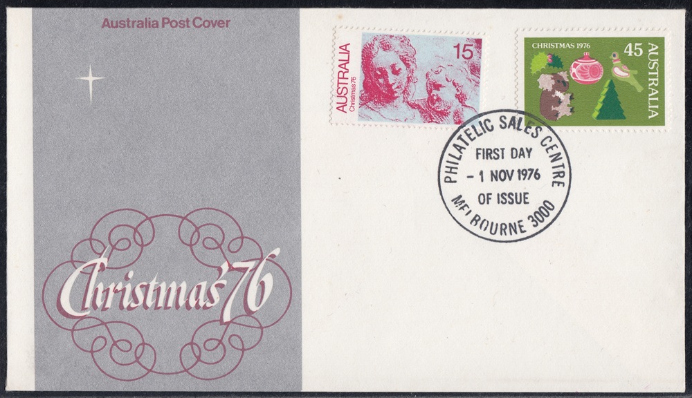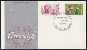 Australia Australia Philately: 1976 Christmas ’76 – First Day Cover No.95 (VIC) thedigitalphilatelist 01/11/1976 3000 – DEGRAVES STREET 3000 – LATROBE STREET 3000 – PHILATELIC BUREAU 3000 – PHILATELIC SALES CENTRE 3168 – CLAYTON