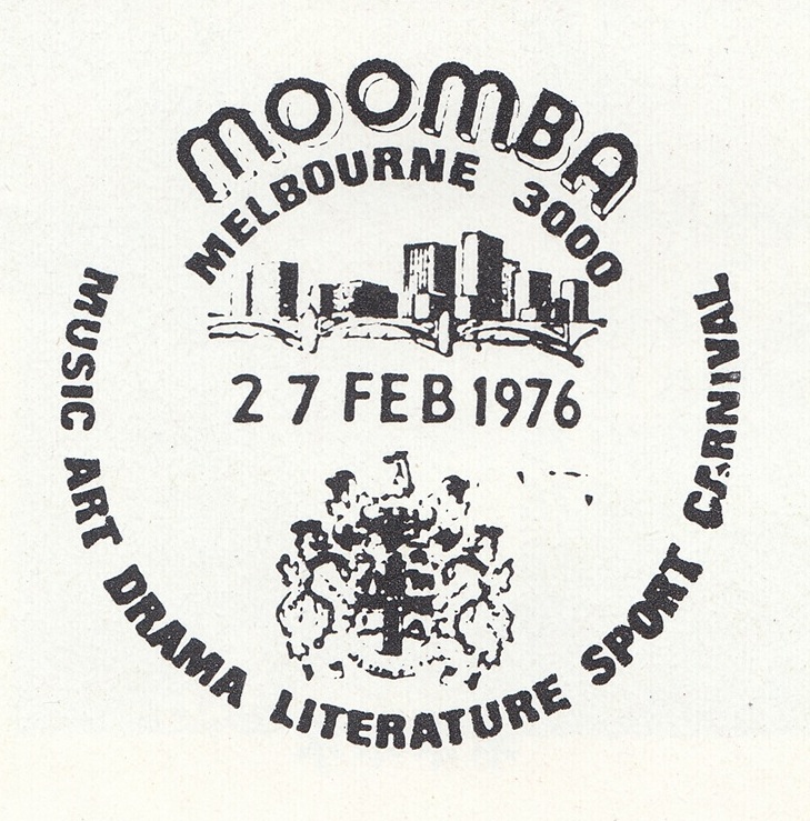 A total of 5,682 articles, including four registered, were cancelled with the special postmarker provided at a temporary post office in Melbourne between 27th February and 8th March, 1976, for the Moomba Festival.