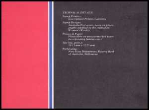 Approximarely 2% of the printing of both values was completed by the Government Printer, Sydney on a Heidelberg four-colour photo-litho press. It is believed all the stamps printed on this press were used for the souvenir stamp packs.