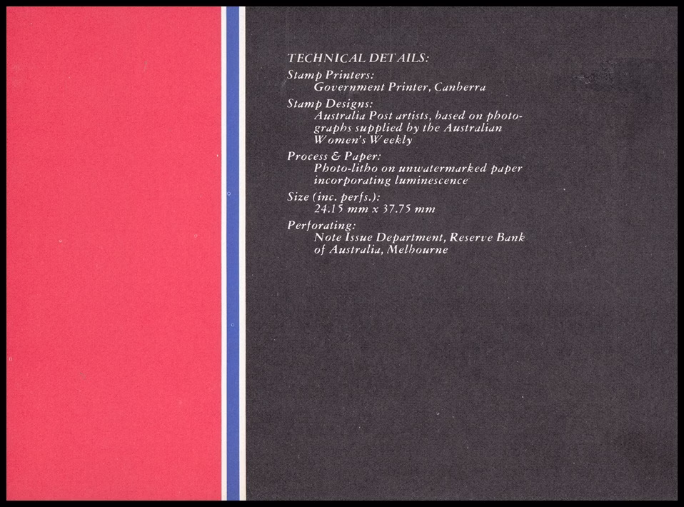 The other 98% were printed in Melbourne under the control of the Government Printer, by Norman J Field, on a Komori four-colour, photo-litho press. These stamps were used for general distribution to post offices and philatelic sales centres.