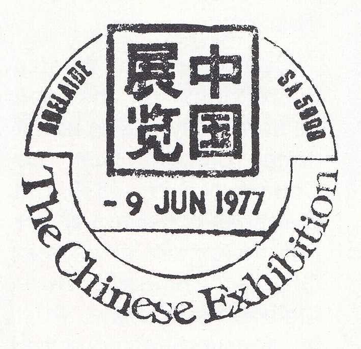 During the period 9th to 29th June, 1977, a temporary post office was provided at The Chinese Exhibition, Adelaide, S.A. A total of 16,867 articles including ten registered were cancelled with the special postmarker provided for the exhibition.