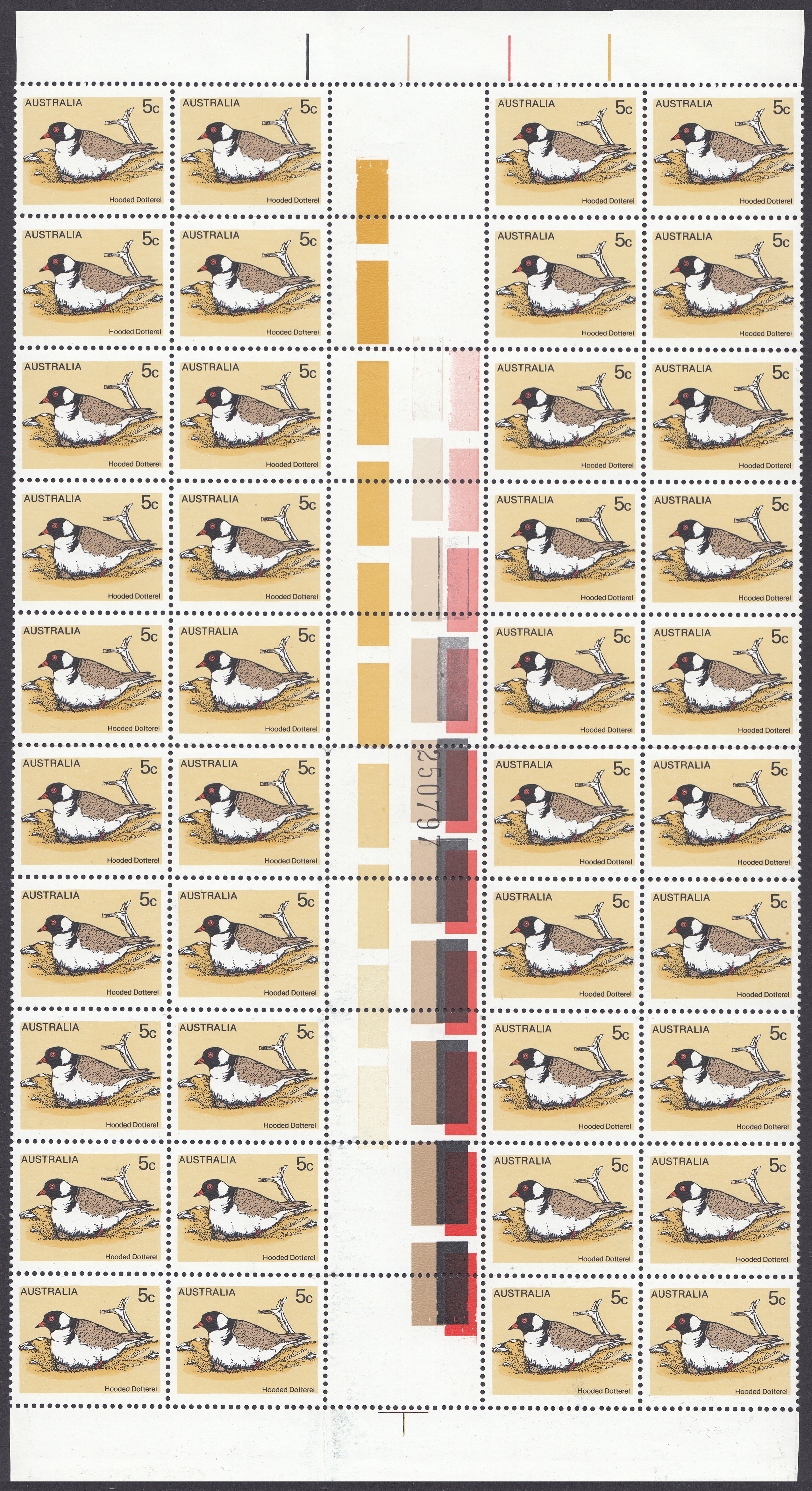 - Sheet: Printed in two panes of 50 stamps (R10 x 5) divided by vertical gutter.