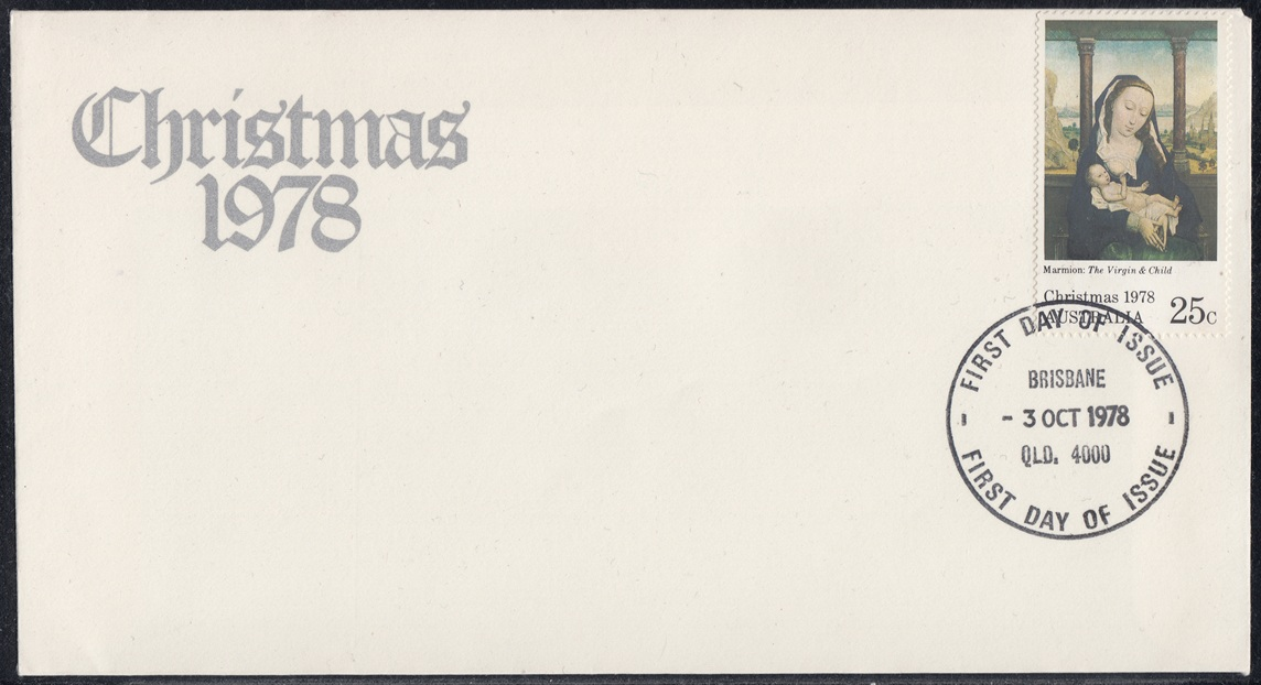 Australia Australia Philately: 1978 Christmas (I) – First Day Cover No.119 (QLD) thedigitalphilatelist 03/10/1978 4000 – BRISBANE Share this: Share on Facebook (Opens in new window) Facebook Share on X (Opens in new window) X Like this:Like Loading... Related