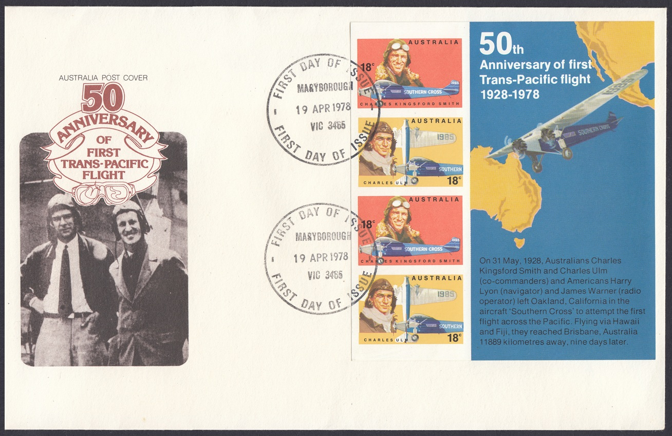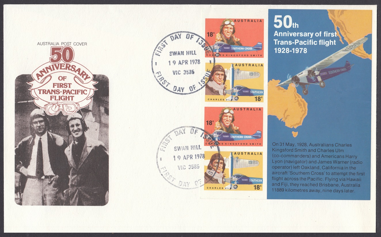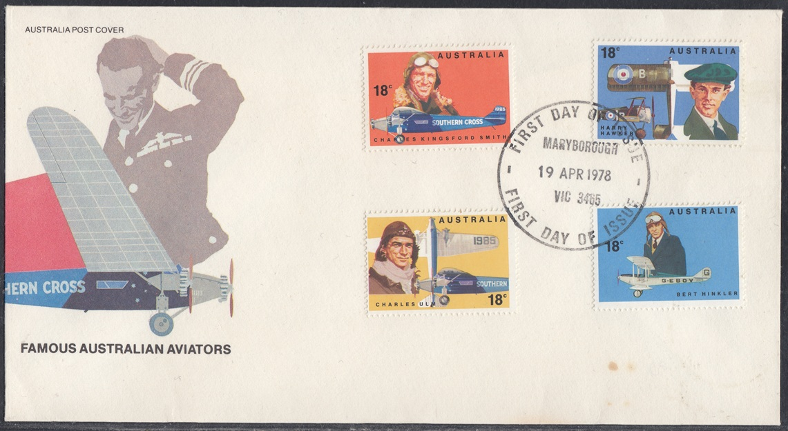 Australia Australia Philately: 1978 Famous Australian Aviators – First Day Covers No.108 & No.109 (VIC) thedigitalphilatelist 19/04/1978 3223 – PORTARLINGTON 3465 – MARYBOROUGH 3585 – SWAN HILL Share this: Share on Facebook (Opens in new window) Facebook Share on X (Opens in new window) X Like this:Like Loading... Related