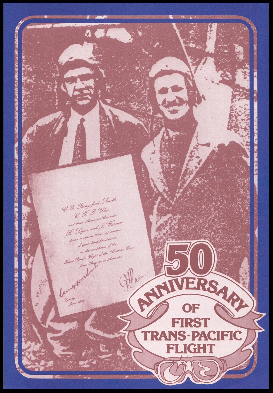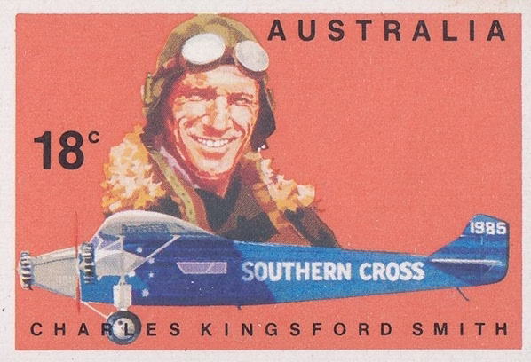 The miniature sheet, which commemorates the 50th anniversary of the first trans-pacific flight, incorporates four imperforate stamps – two are the Kingsford Smith stamp design and two are the Ulm stamp design – alongside an interpretation of the Southern Cross during its flight across the Pacific.