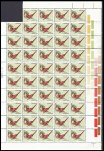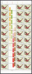 - Sheet: Printed in two panes of 50 stamps (R10 x 5) divided by vertical gutter.