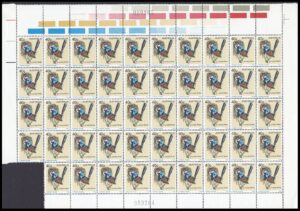 - Sheet: Printed in two panes of 50 stamps (R5 x 10) divided by horizontal gutter.