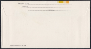 First day cover no. 125 (190 mm x 101 mm) has been provided for the issue. The unserviced cover costing $A0.12 will be available from 7 March 1979. It will be available with the $5 stamp affixed and postmarked on the first day of issue, 14 March 1979 for $A5.12.