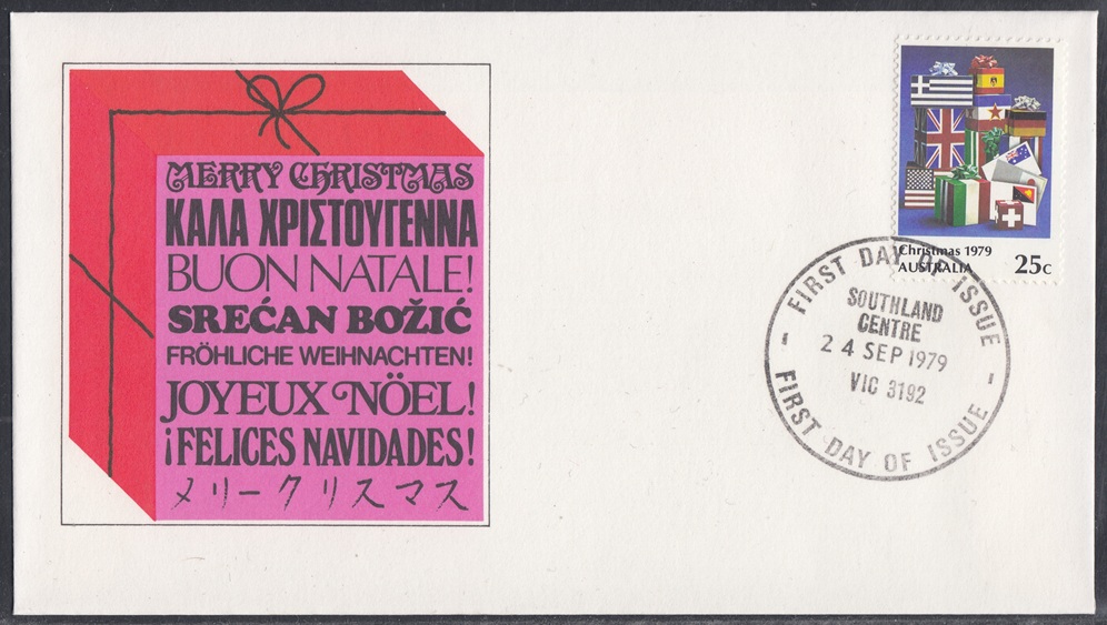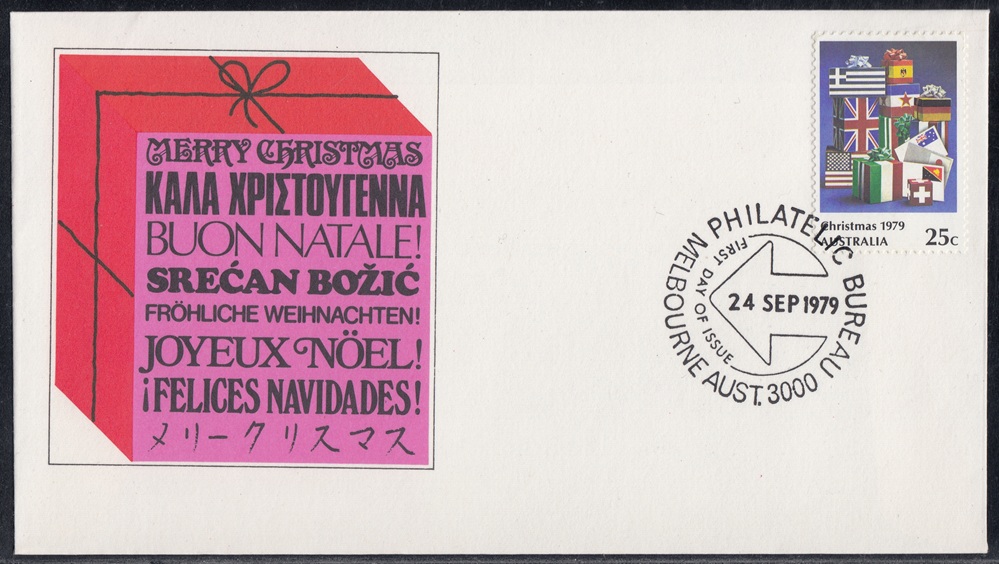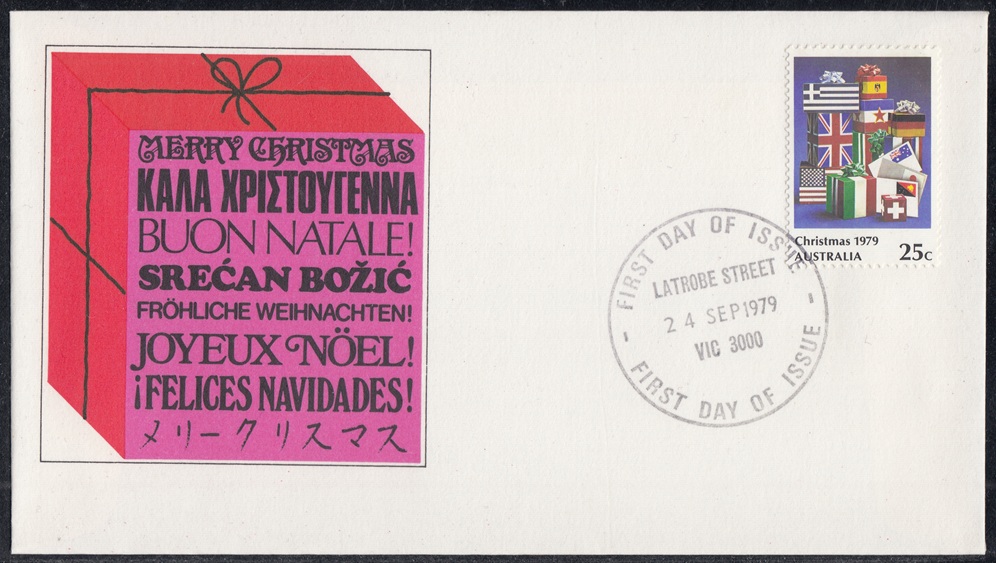 Australia Australia Philately: 1979 Christmas (I) – First Day Cover No.133 (VIC) thedigitalphilatelist 24/09/1979 3000 – LATROBE STREET 3000 – PHILATELIC BUREAU 3192 – SOUTHLAND CENTRE Share this: Share on Facebook (Opens in new window) Facebook Share on X (Opens in new window) X Like this:Like Loading... Related