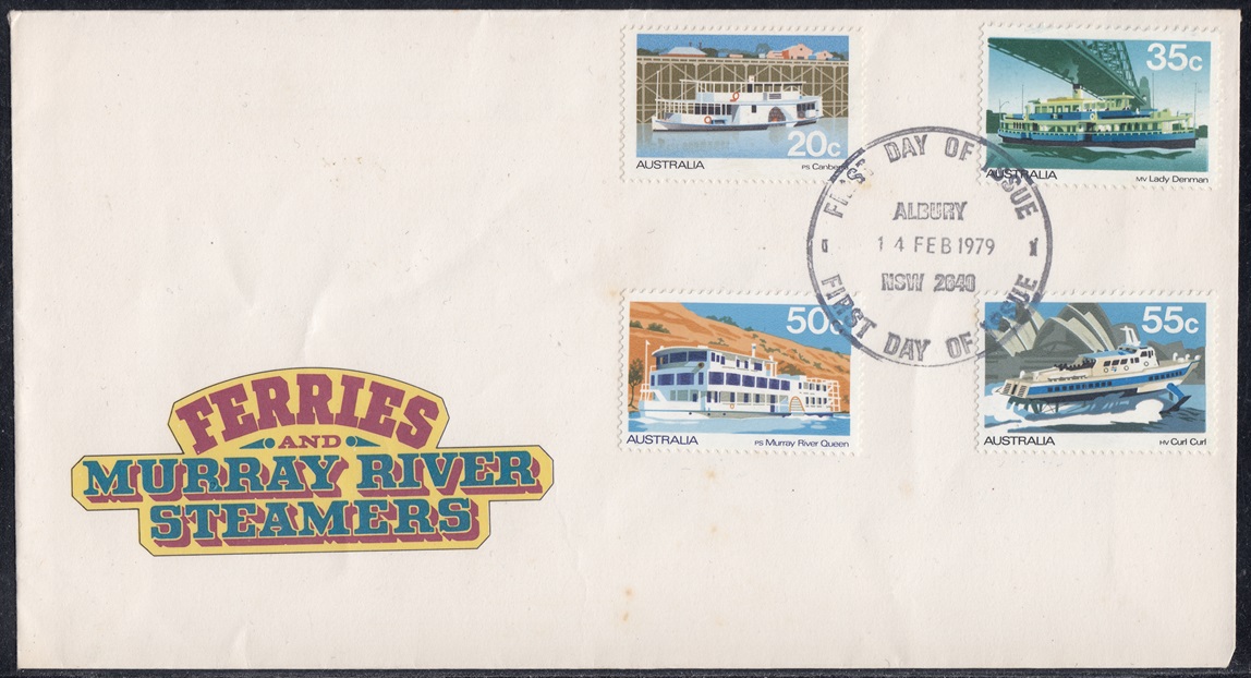 Australia Australia Philately: 1979 Ferries and Murray River Steamers – First Day Cover No.124 (NSW) thedigitalphilatelist 14/02/1979 2000 – PHILATELIC SALES CENTRE SYDNEY 2640 – ALBURY Share this: Share on Facebook (Opens in new window) Facebook Share on X (Opens in new window) X Like this:Like Loading... Related