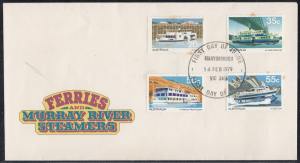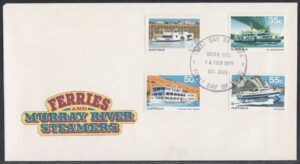 Australia Australia Philately: 1979 Ferries and Murray River Steamers – First Day Cover No.124 (VIC) thedigitalphilatelist 14/02/1979 3045 – MELBOURNE AIRPORT 3168 – CLAYTON 3350 – BALLARAT 3465 – MARYBOROUGH 3585 – SWAN HILL