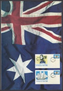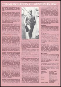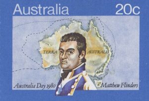 A 20c stamp featuring Matthew Flinders will be issued on 23 January 1980 to commemorate Australia Day 1980.